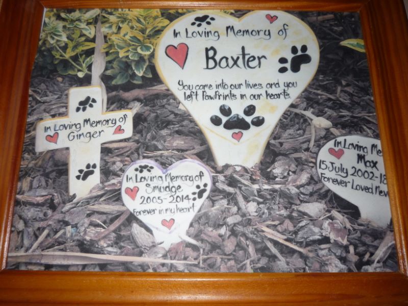 On all of them you can have your own words, and colours, and if you send a photo through I will try to get the likeness of your loved Pet. Hand Painted.