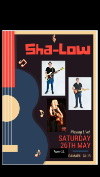 Join us at the Club this Saturday Night and be entertained by "Sha-Low, starting at the earlier time of 7pm
