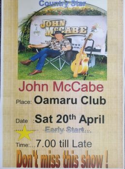 Saturday 20th April from 7pm we have John McCabe in the Lounge Bar please note earlier start time.