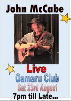 SATURDAY 23RD AUGUST: John McCabe from 7.00 - 10.30 pm lounge bar
